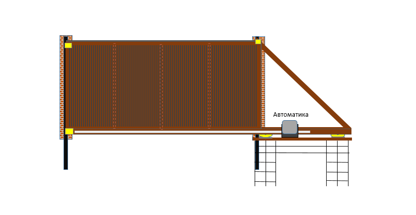 Благодаря установленным роликовым опорам, сдвижные ворота, открываясь и закрываясь, перемещаются вдоль забора.